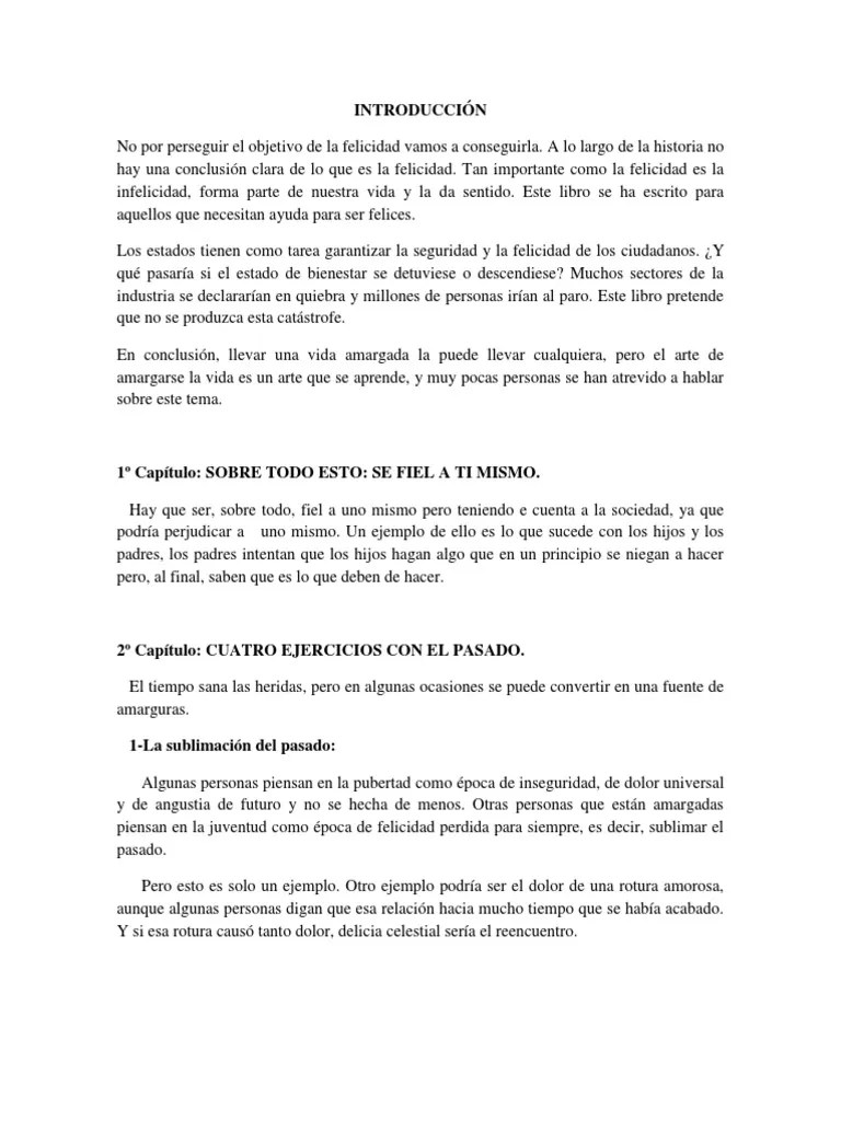 No es estrictamente un resumen, ya que es una selección de frases o párrafos literales del libro. Estas navidades nadie me ha regalado libros, he sido yo quien los ha regalado. A continuación podéis encontrar un resumen del libro "el arte de no amargarse la vida". Dices que te parece difícil llevar a cabo algunas de las técnicas que propone rafael santandreu, solo comentarte que no es en absoluto complicado, solo requiere esfuerzo. El arte de no amargarse la vida, no solo nos ofrece las herramientas de la psicología para ayudarnos a alcanzar la estabilidad emocional, sino que nos propone un nuevo modelo de filosofía personal y social que nos hará más fuertes como individuos y como sociedad. El objetivo de este libro es ayudar a los lectores a aprender a ser fuertes emocionalmente y aprender a ser feliz. No es estrictamente un resumen, ya que es una selección de frases o párrafos literales del libro.